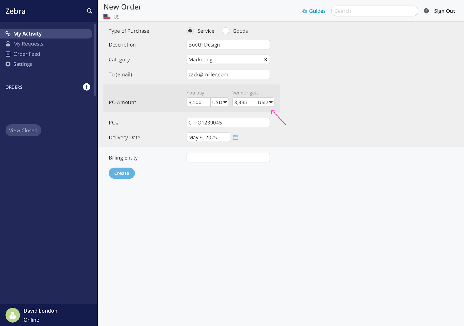 - Choose the preferred currency for your vendor to receive. If the currency you require is not listed, please contact Candex support for more information.