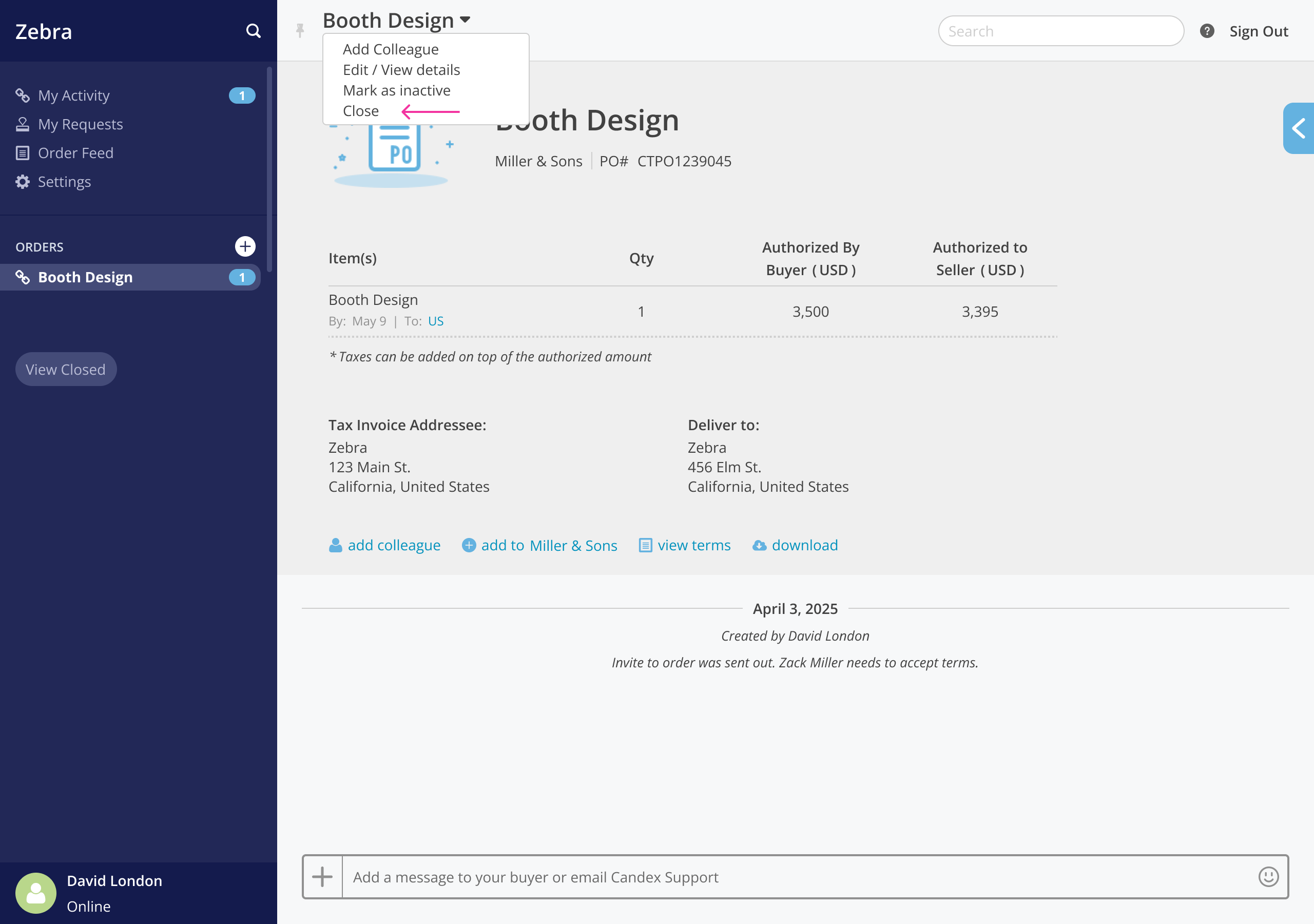 - Go to the Purchase Order (PO) in Candex
