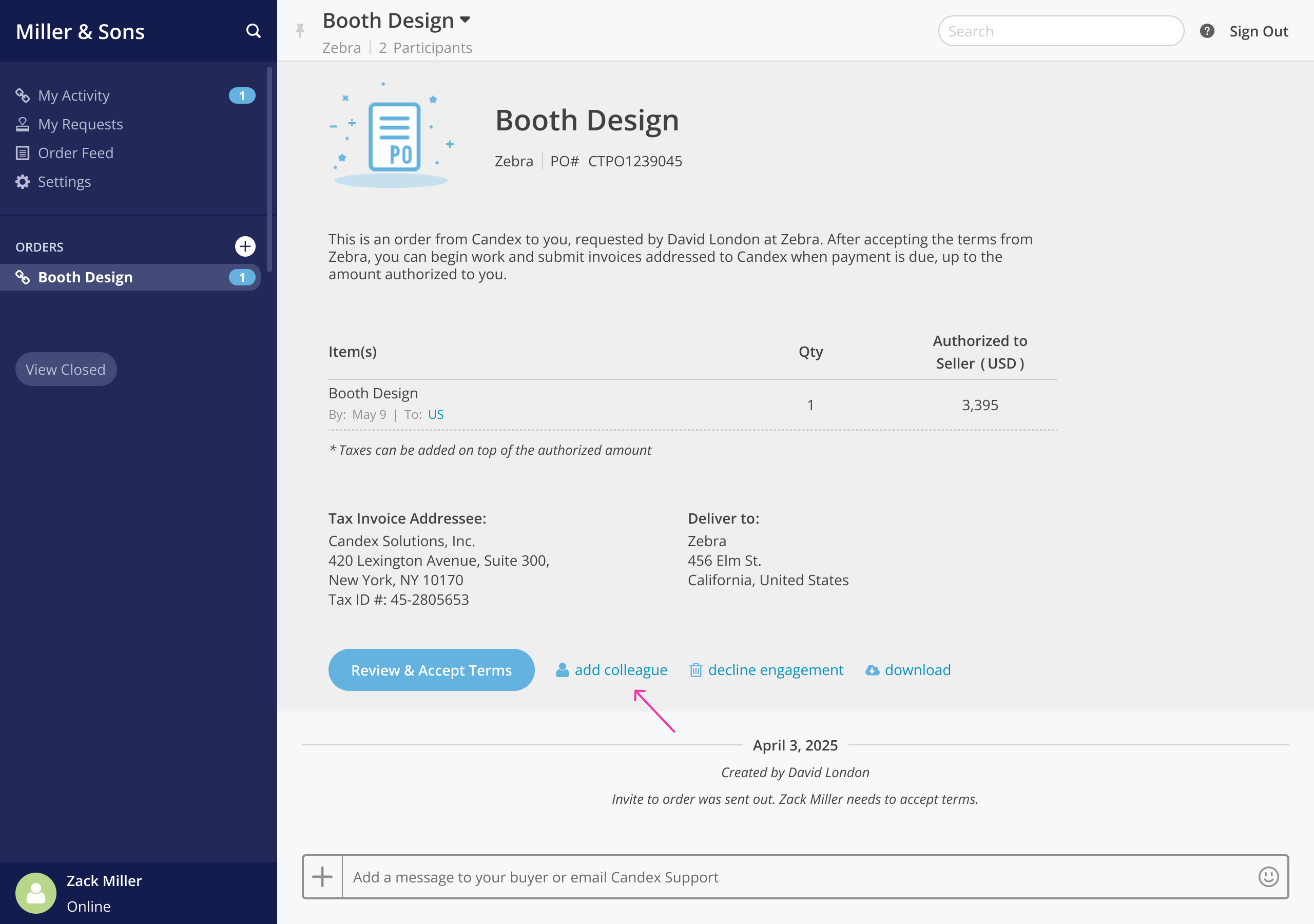 2. Add a colleague - Navigate to the specific order and click the add colleague button