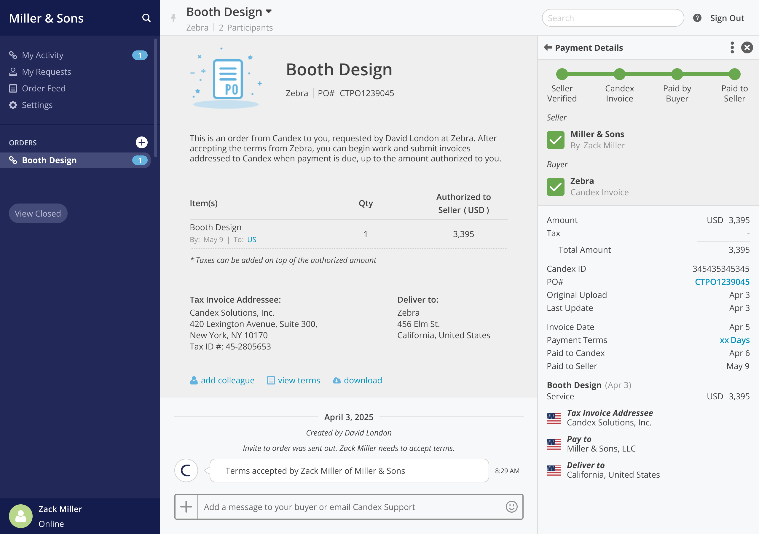 - Candex Invoice - Candex has issued an invoice to the Buyer
